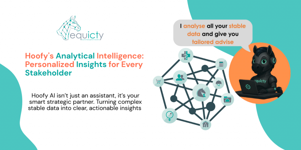 Enter Hoofy, Equicty’s intelligent AI assistant that analyzes your stable’s vast data and provides strategic, solution-driven advice tailored to each stakeholder. This is where Equicty’s technological capabilities truly shine—making complex data simple and useful for everyone involved.